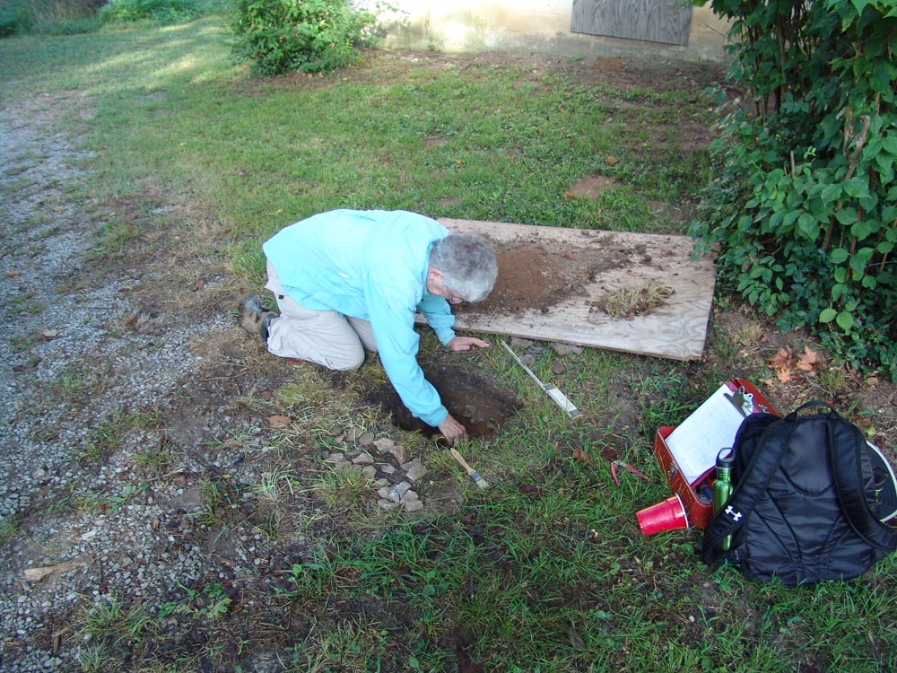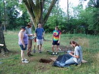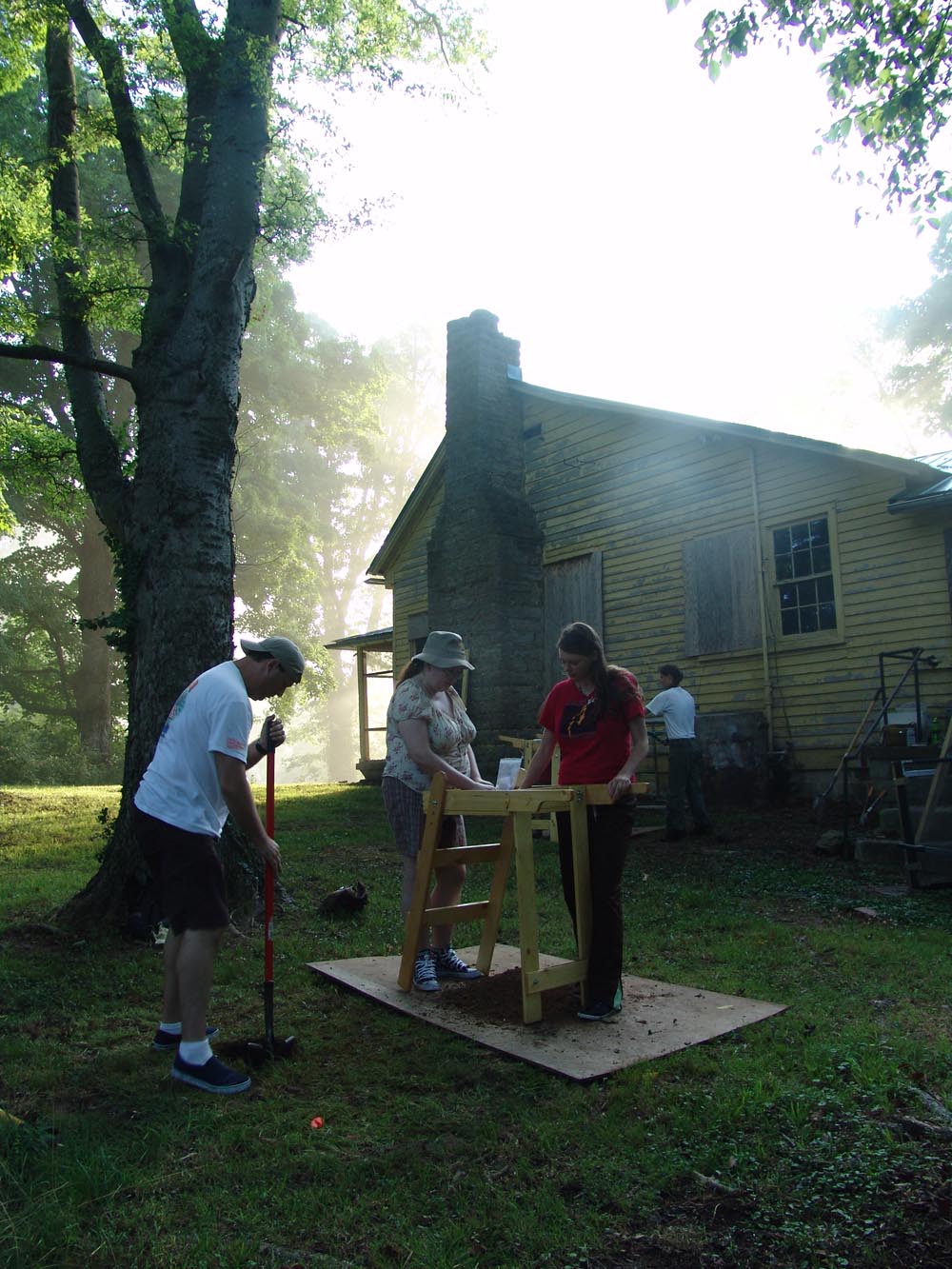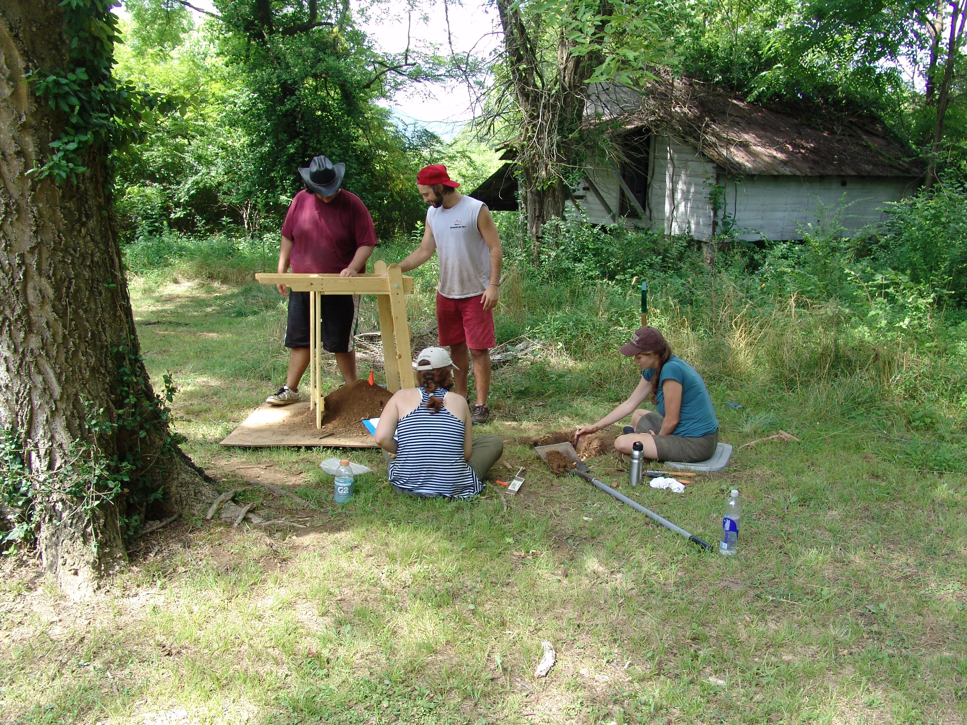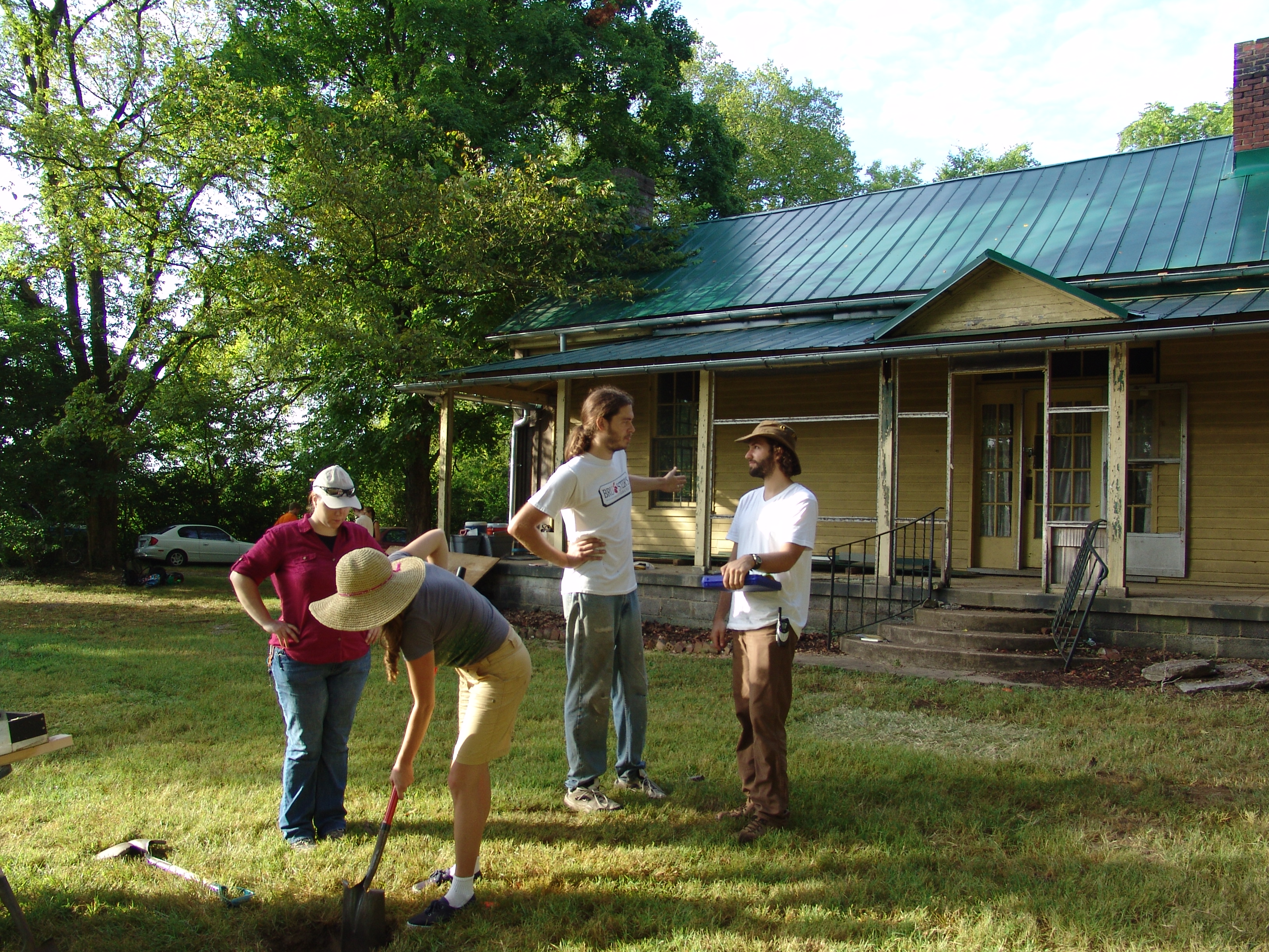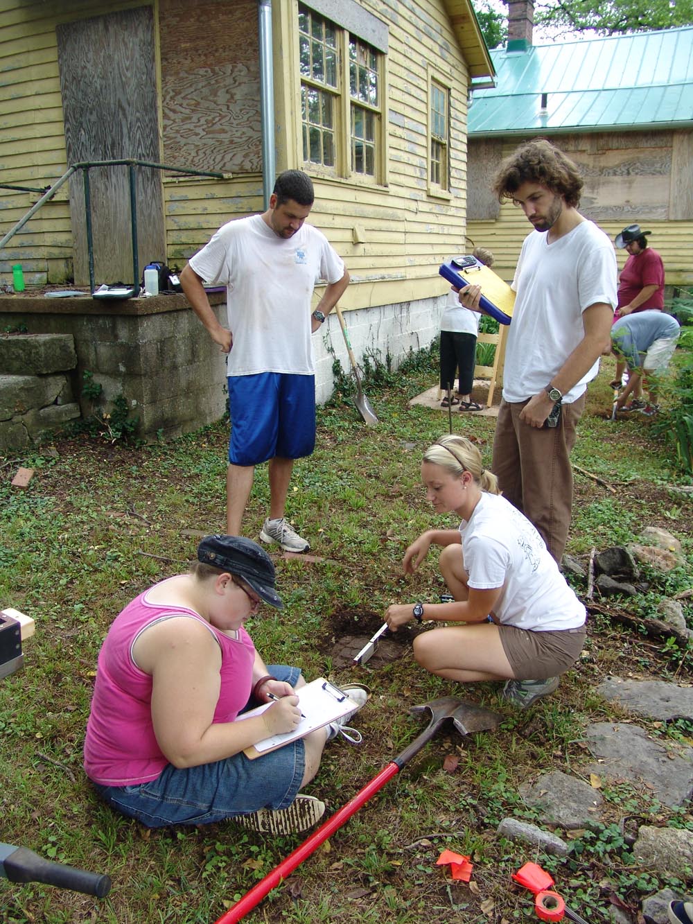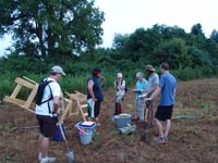 July 8th - After a brief orientation, the crew began work by laying out a grid and excavating shovel tests at a historic home that was built in 1842. |