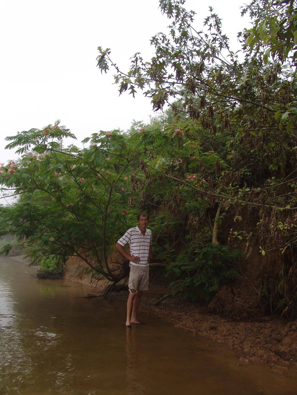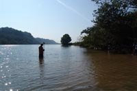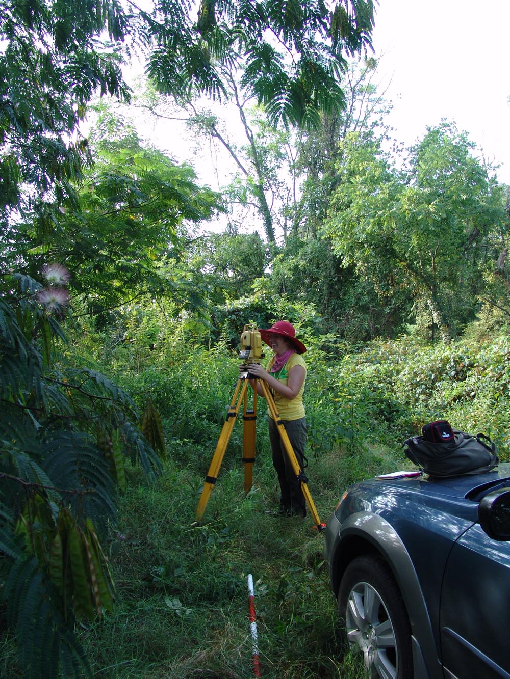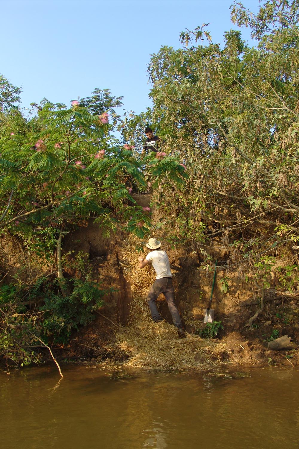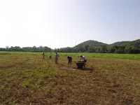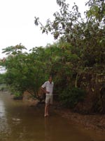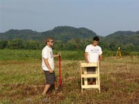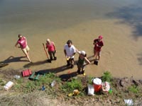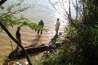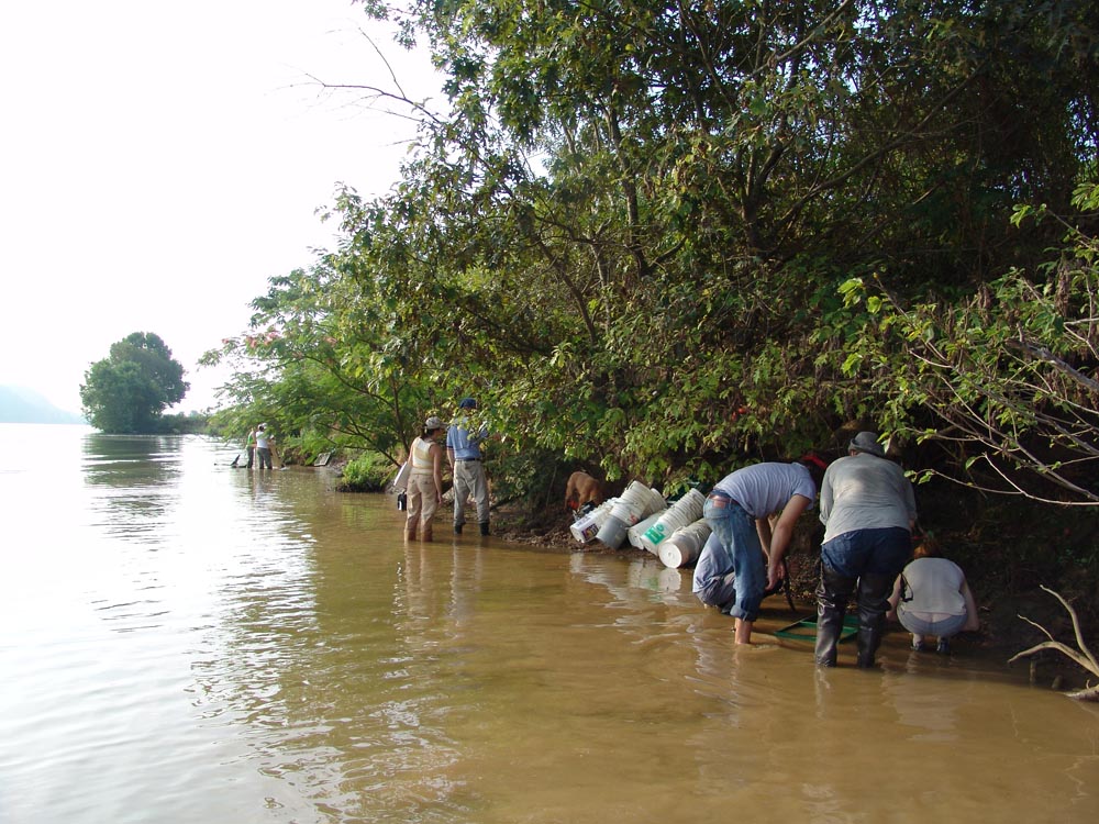 | July 30th - We continued working on the same site, with additional surface collections downriver. We completed a 3m deep float column, found additional deeply buried flakes and charcoal, and began bucket augering in an attempt to find the extent of the deposits. We also had a team using a totalt station to gather the data needed to create a 3D topographic map of the site. | |||||