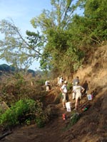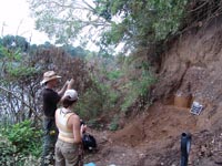 | July 29th - Most of the crew went to the new site, where we continued surface collecting. We also cleaned several profiles with one containing flakes and charcoal more than 3 meters below ground surface. Back at the visitor's center, the float team processed 24 samples in a single day. We also celebrating early birthdays for David Anderson and Sarah Walters. | |||||