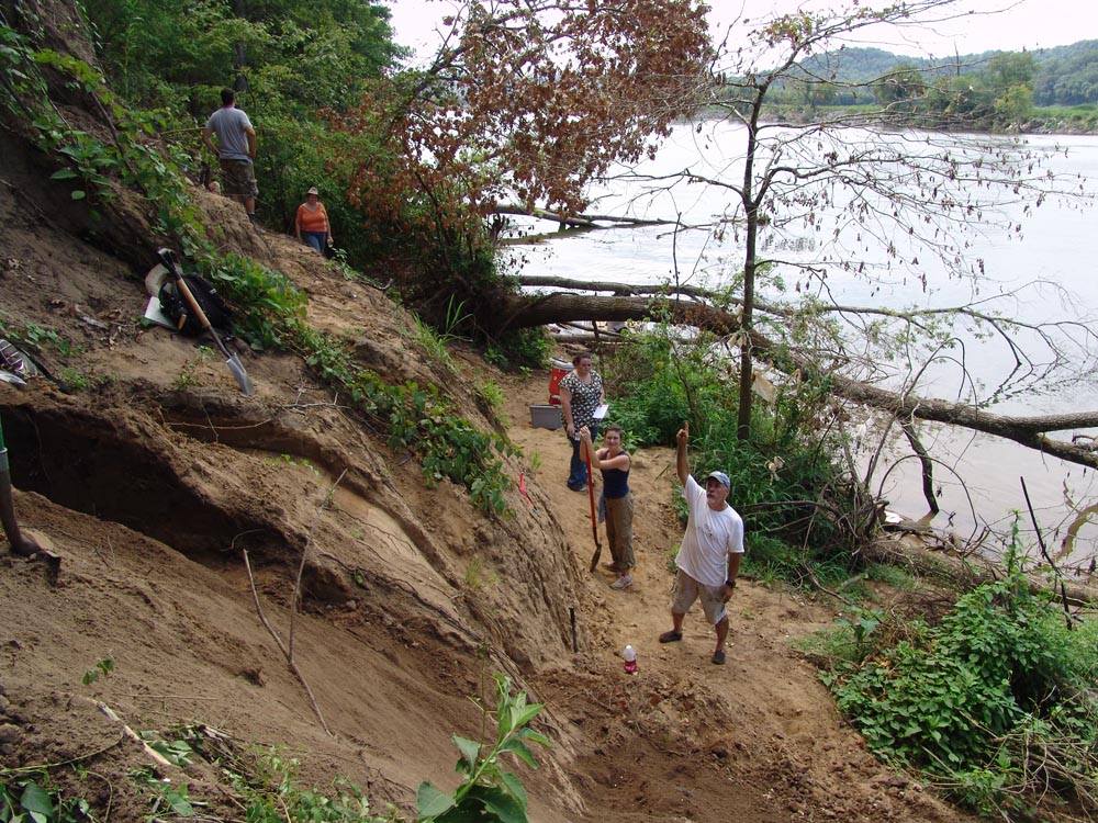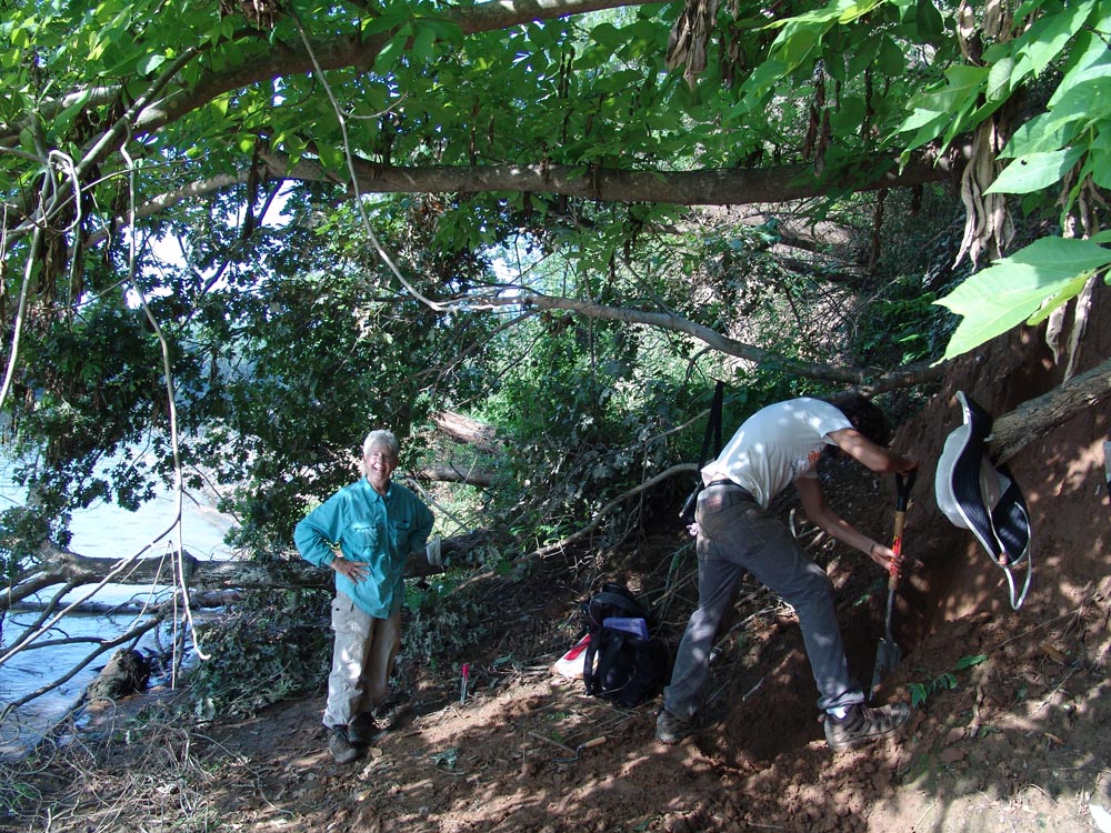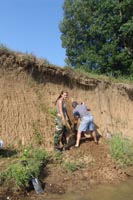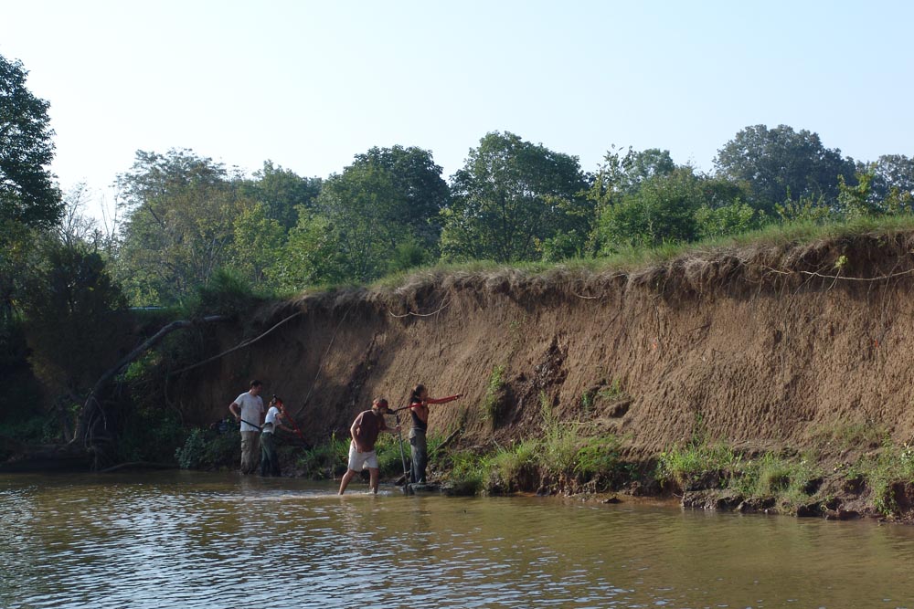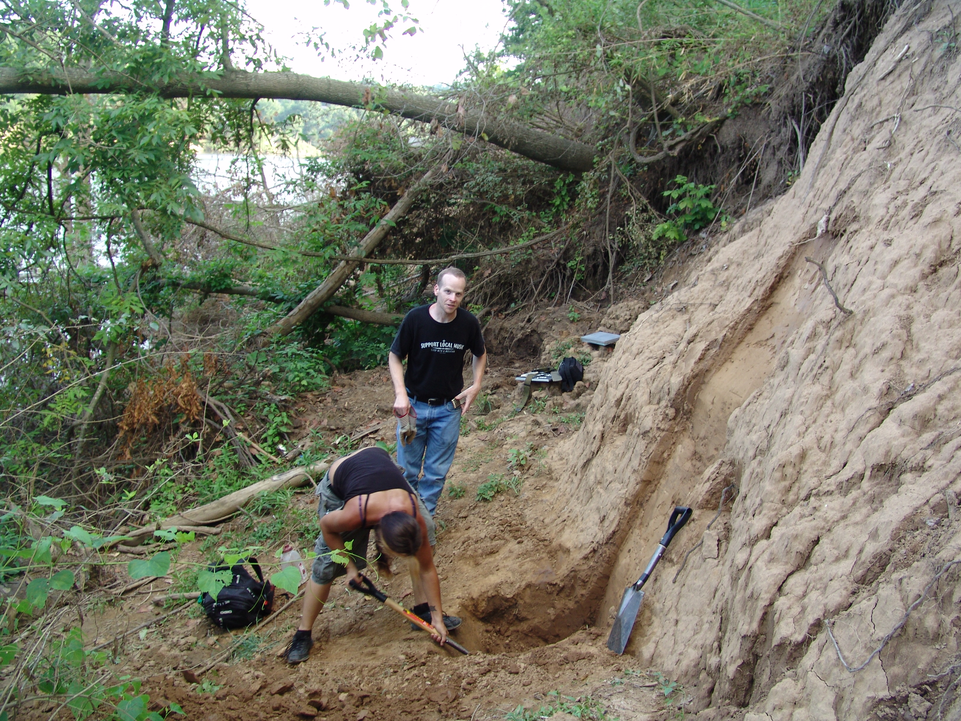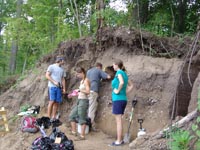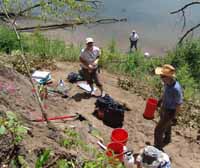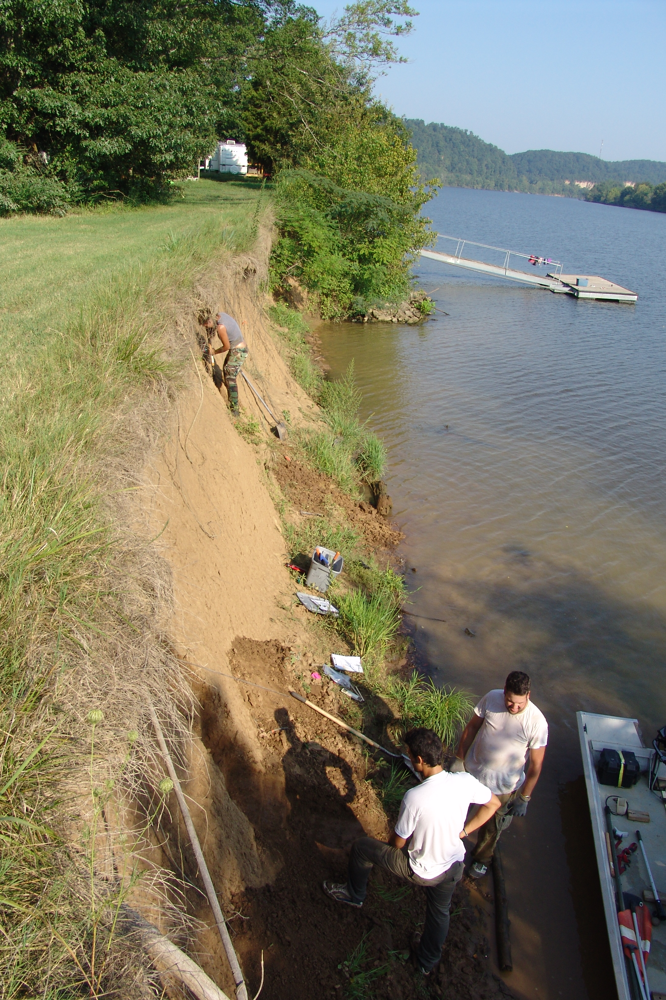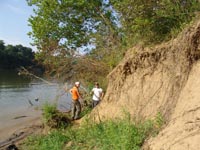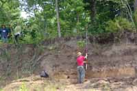 | July 23rd - Shovel testing and augering select locations on the property of the Bells Bend Outdoor Center, which included a visit by a videographer from The Tennessean. A new site was located on the river, and more signs of looting were also found. | |||||