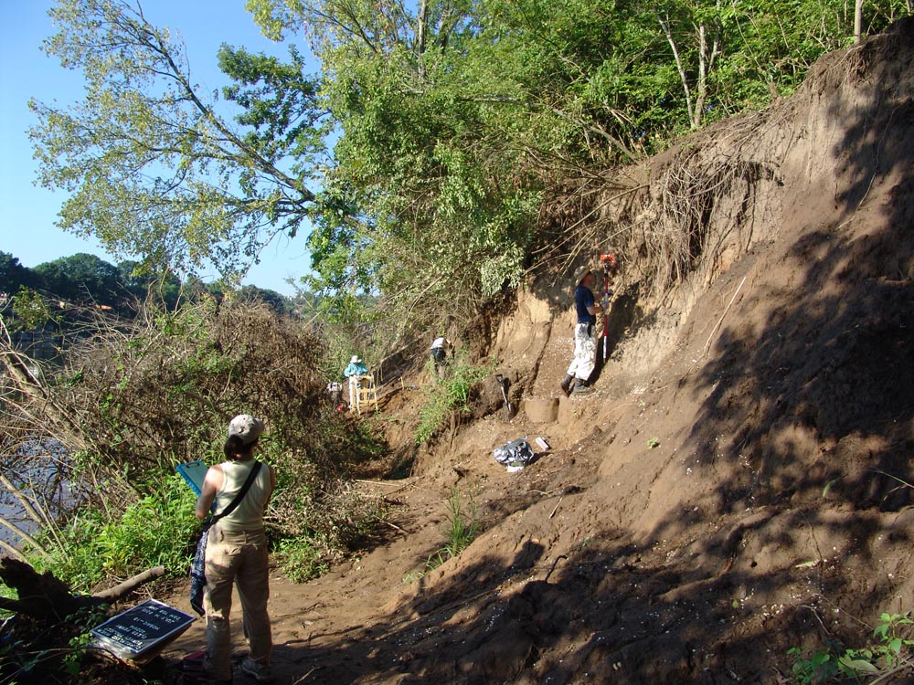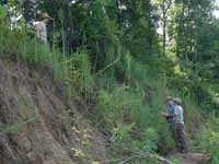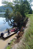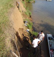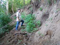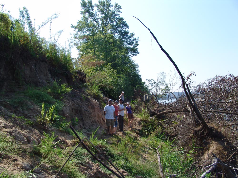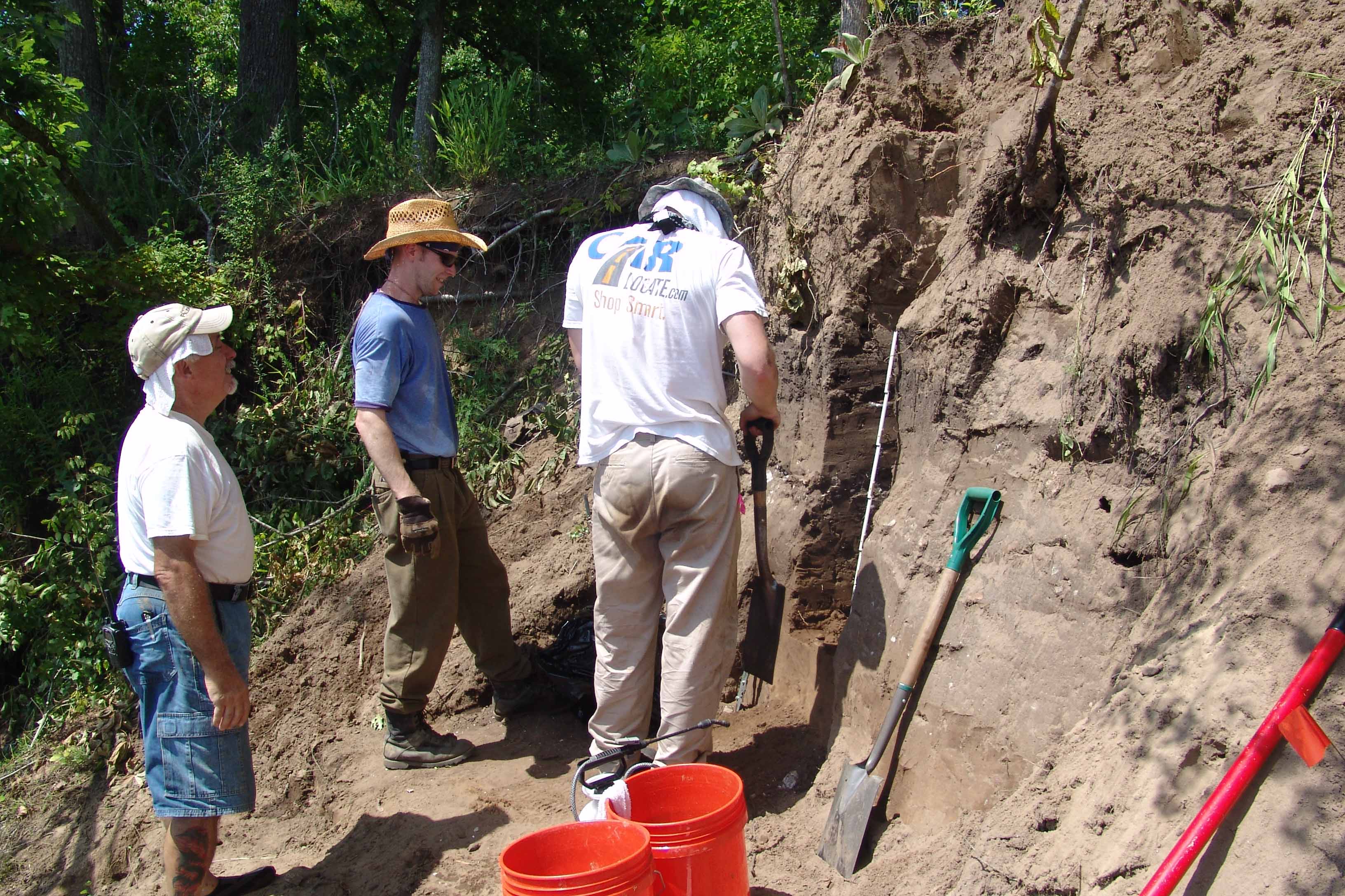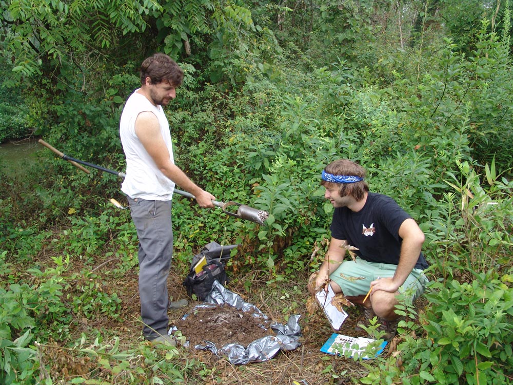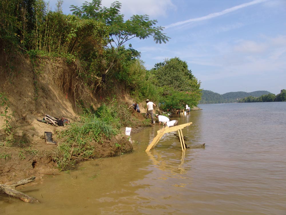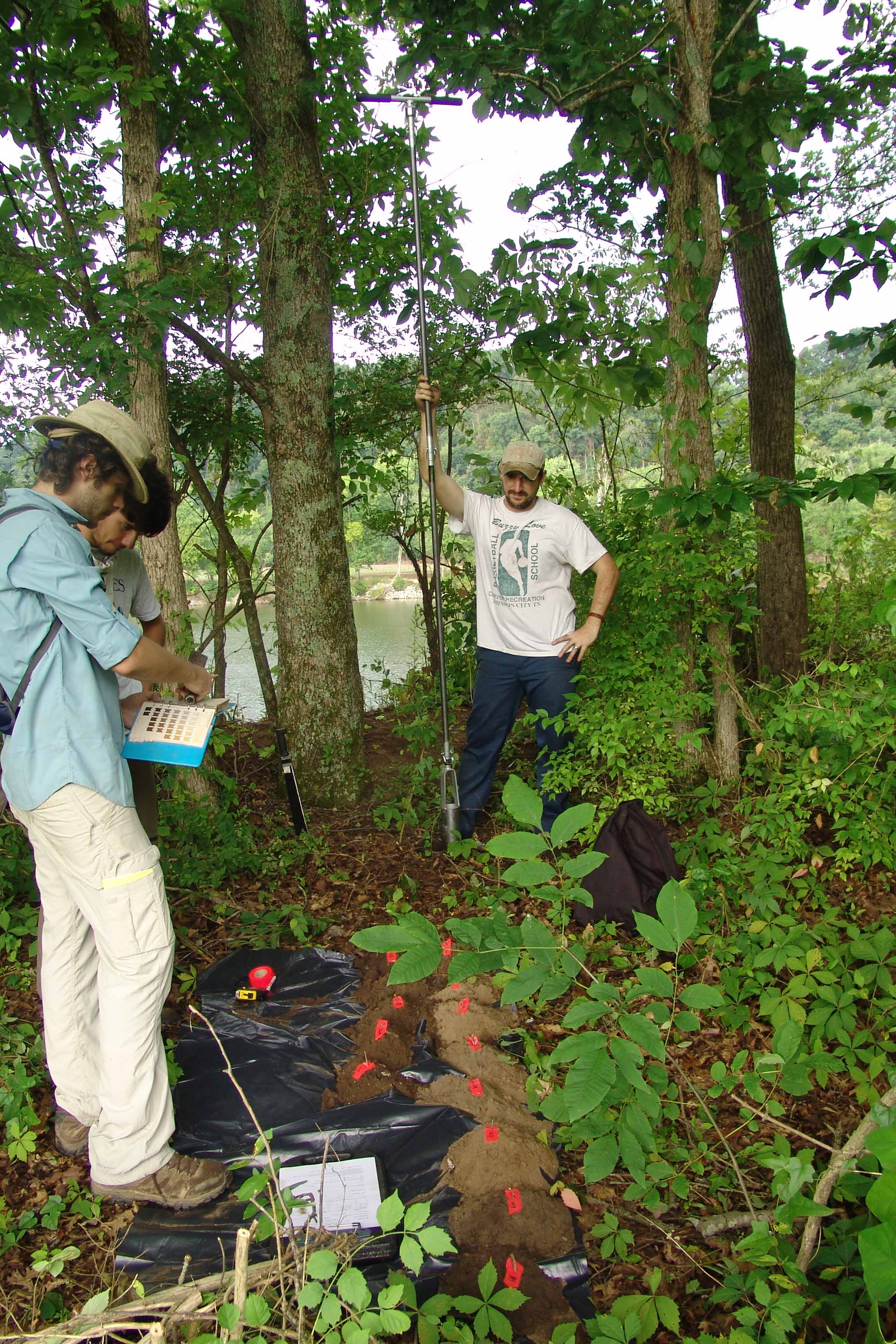 | July 23rd - Shovel testing and augering select locations on the property of the Bells Bend Outdoor Center, which included a visit by a videographer from The Tennessean. A new site was located on the river, and more signs of looting were also found. | |||||