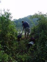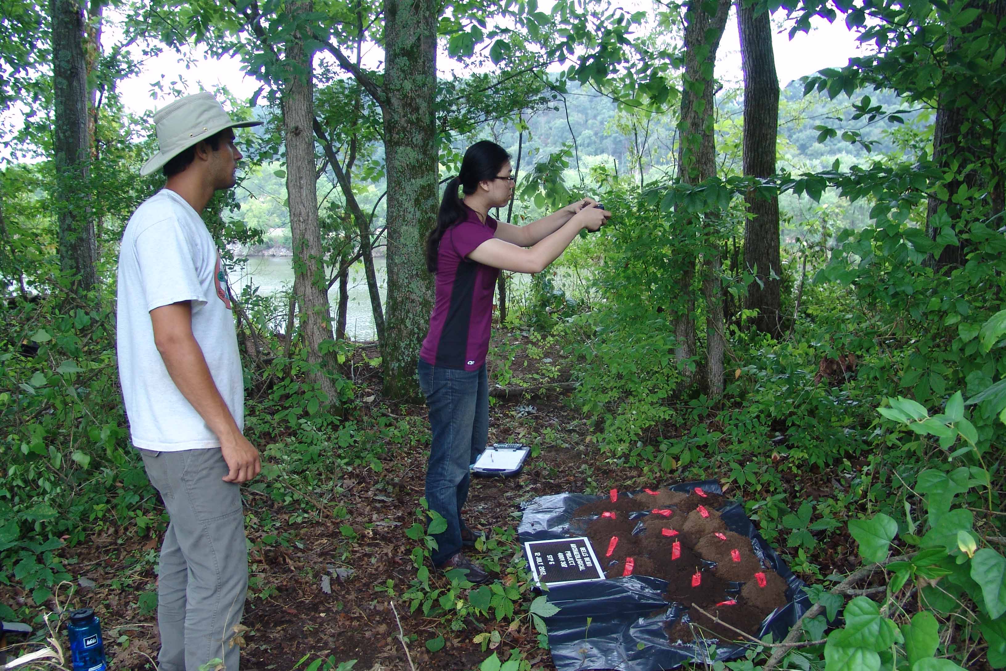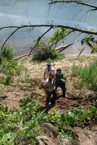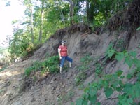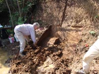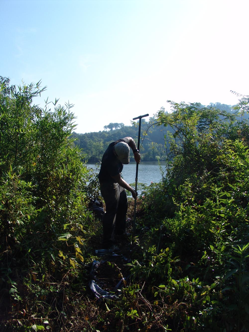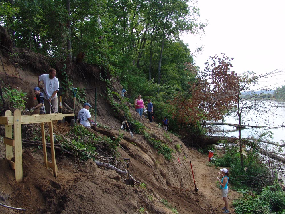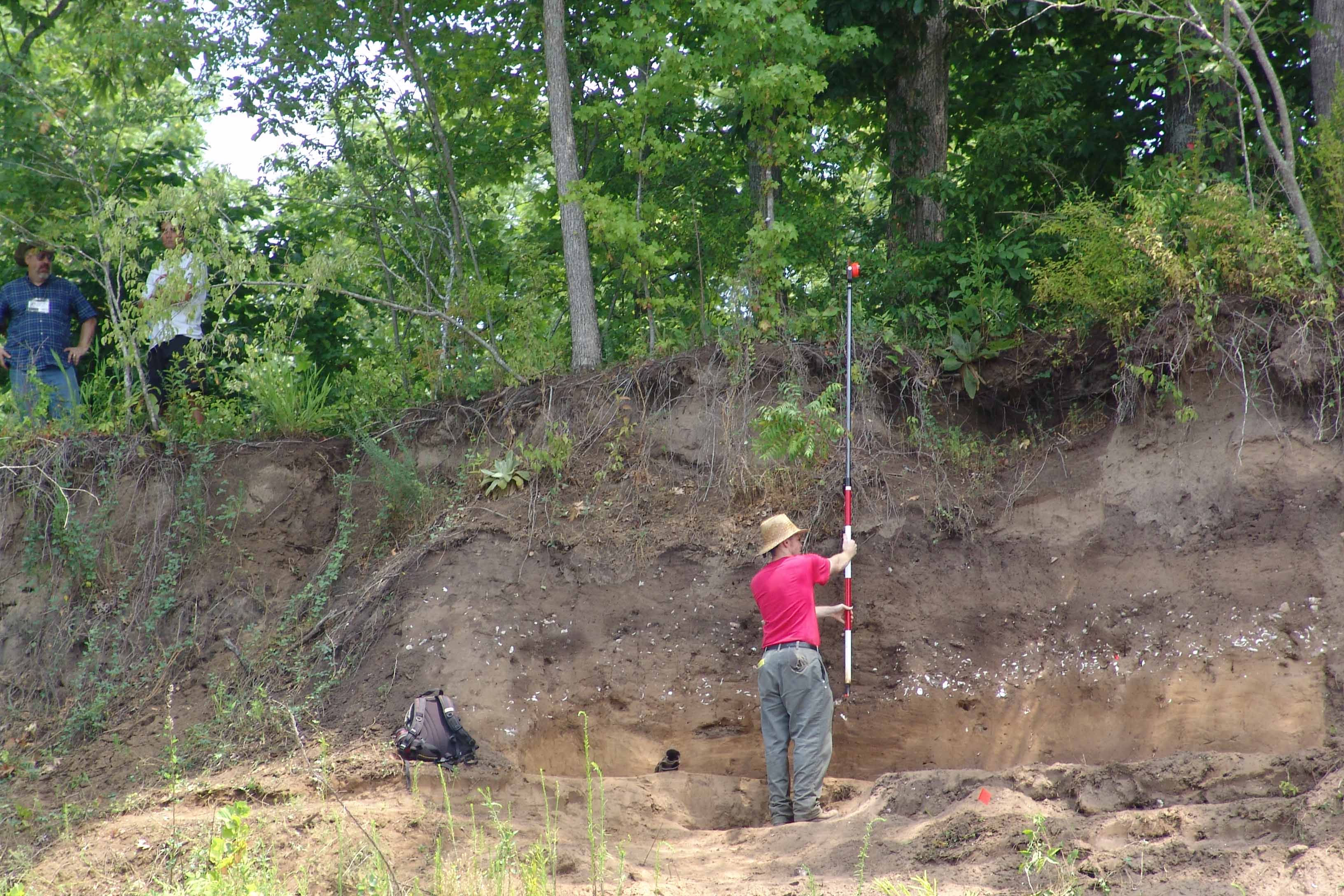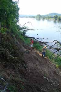 | July 23rd - Shovel testing and augering select locations on the property of the Bells Bend Outdoor Center, which included a visit by a videographer from The Tennessean. A new site was located on the river, and more signs of looting were also found. | |||||