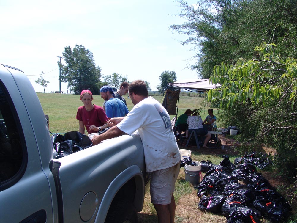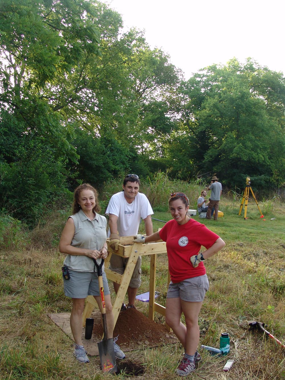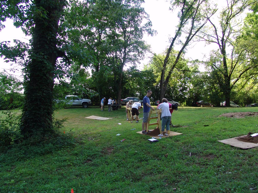 | July 26th - Expanding the shovel testing and augering at various locations on the property of the Bells Bend Outdoor Center, including the removal of two fully articulated pigs. Flotation columns were backfilled and an additional location where looting occurred was also documented. | |||||