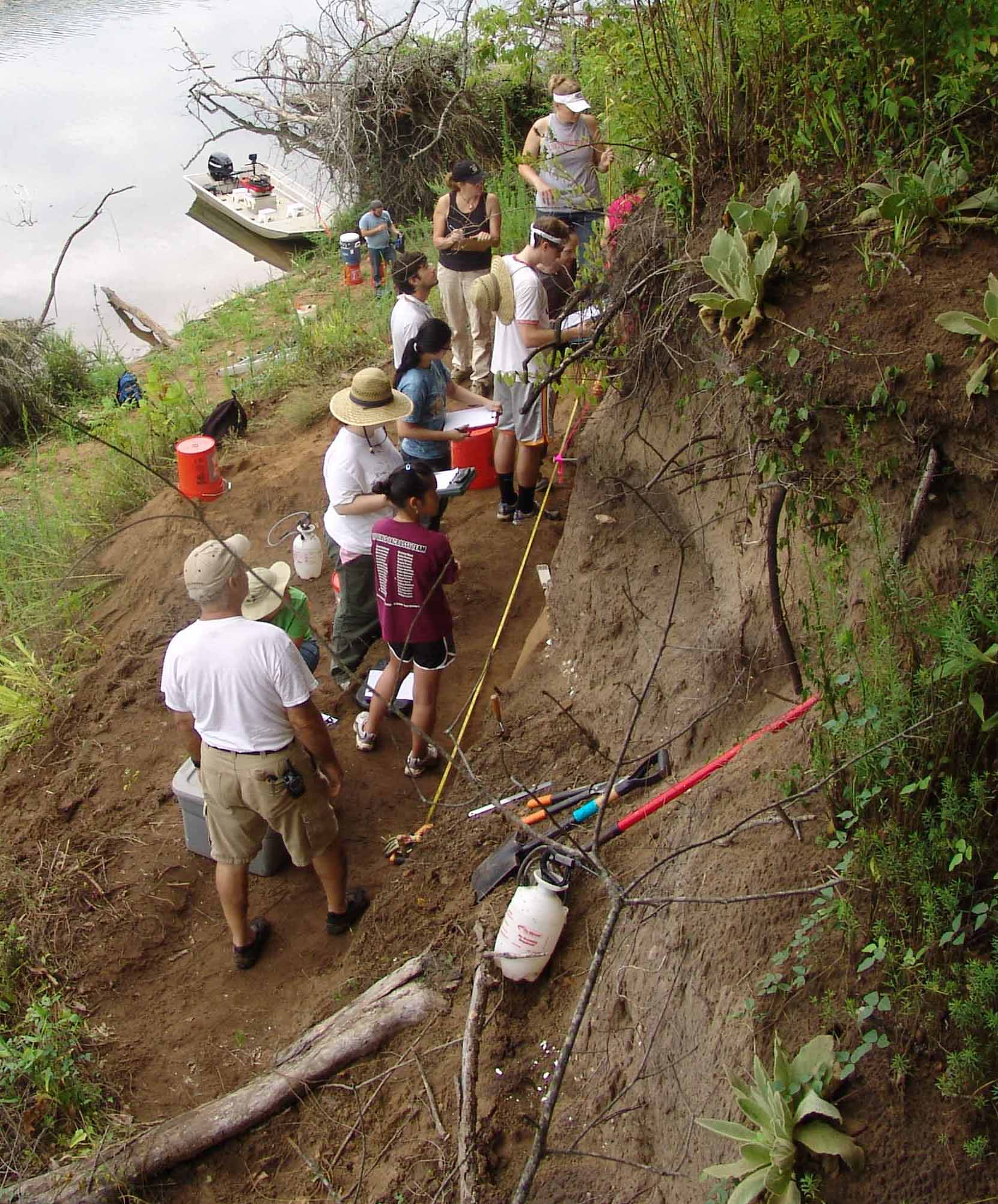 | August 5th - The group on the river continued to excavate two units, finished two profiles, and back-filled a flotation column. A second group began one last set of shovel tests for the field season on the property of the Bells Bend Outdoor Center. | |||||
