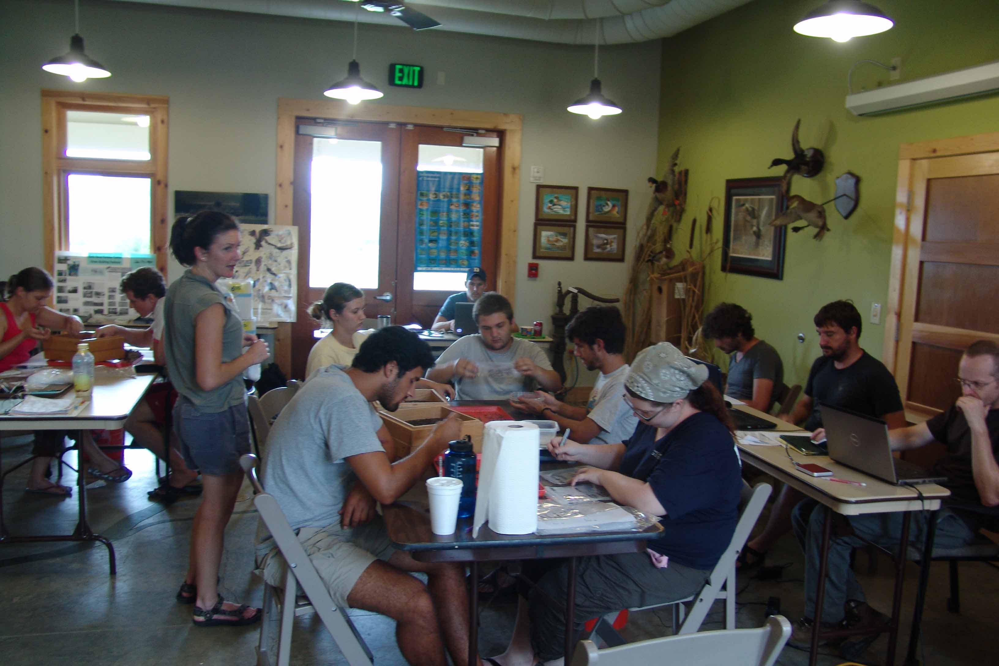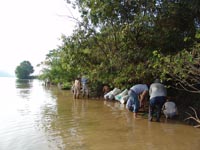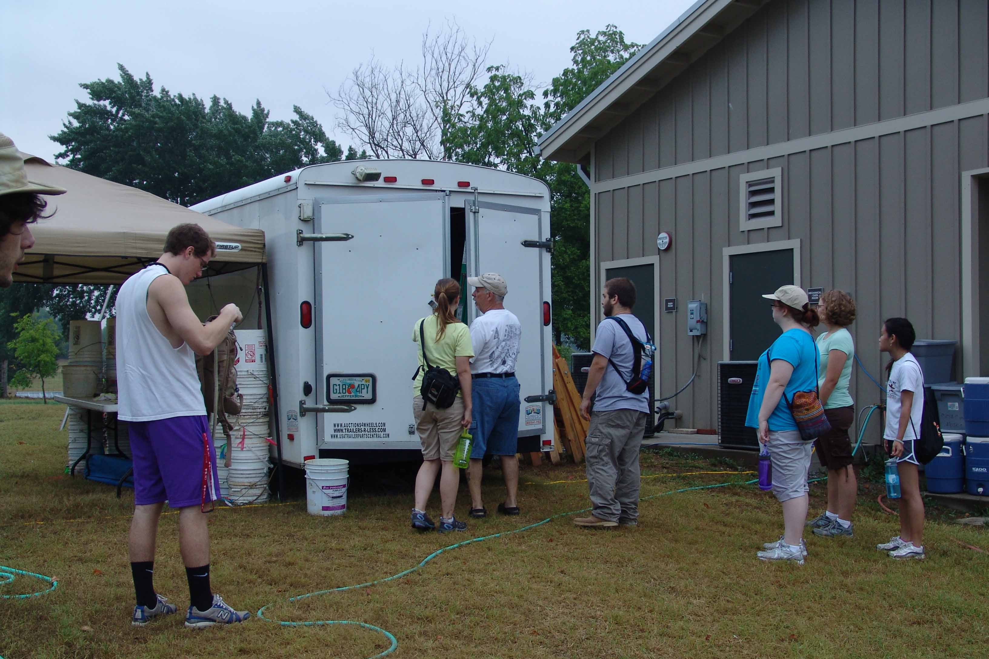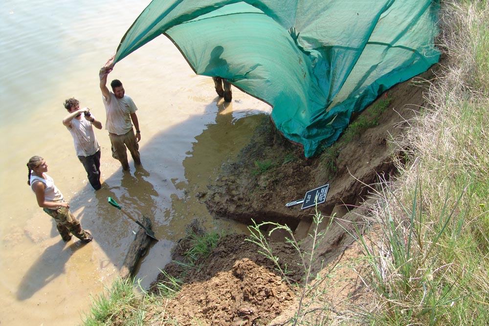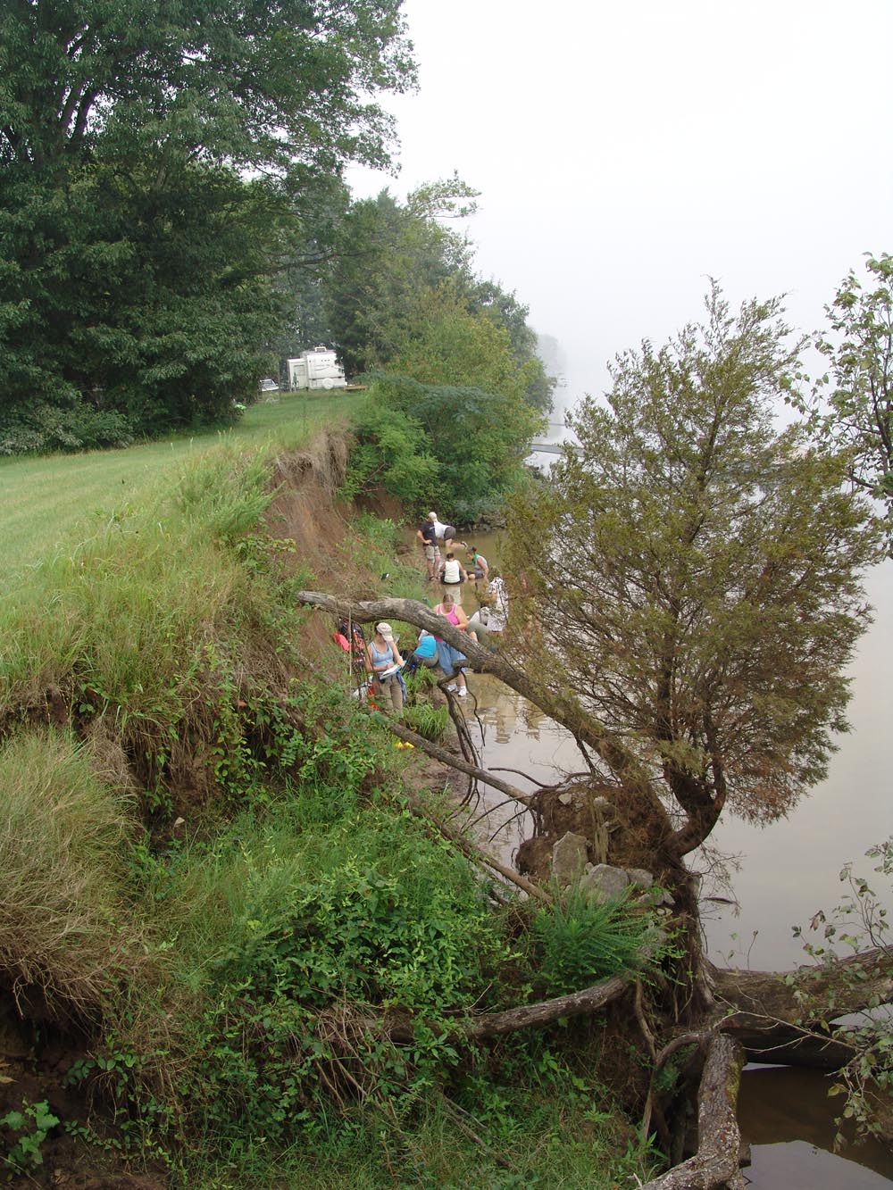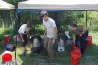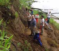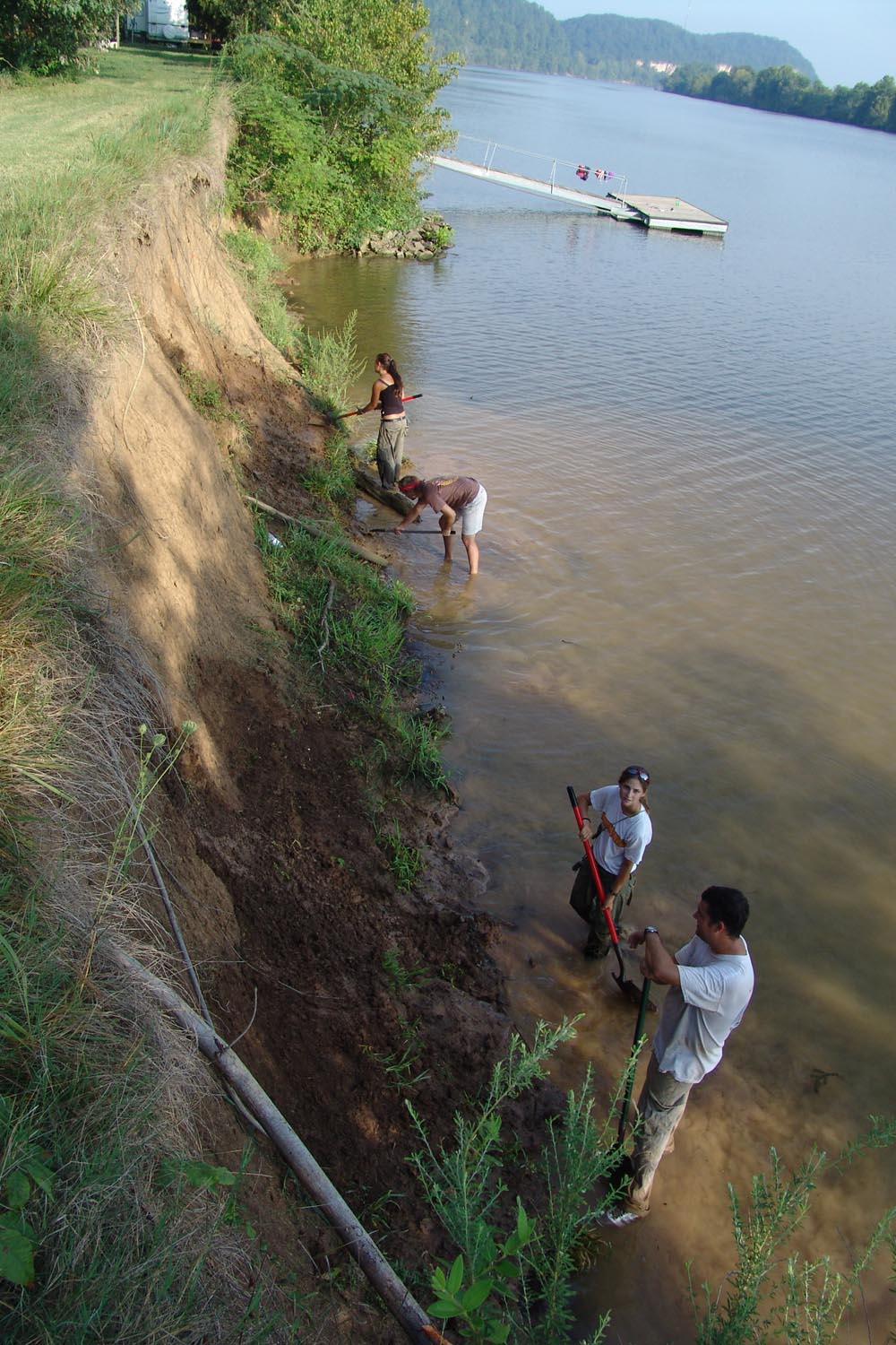 | July 27th - Last night, we all stayed at the Visitor's Center to avoid inclement wather. Moved the shovel tests to new locations and backfilled additional flotation columns along the shoreline. | |||||