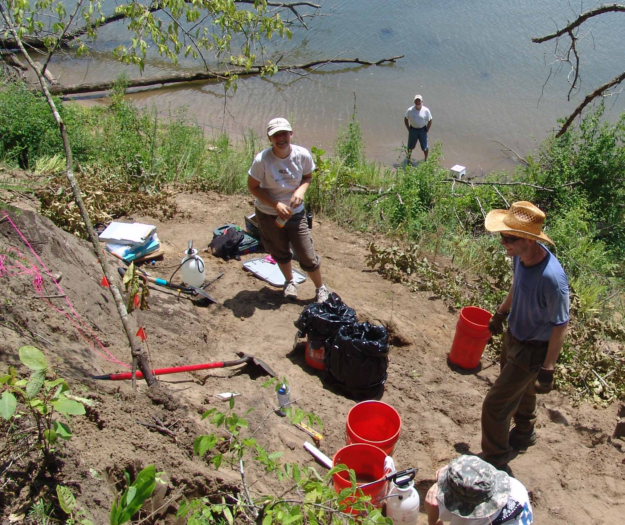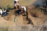 | August 4th - Continued with unit excavations on the river and two additional profile sections nearby. At the same time, another crew spent time cleaning, sorting, and cataloging artifacts in the lab. Another group went down to record recent looting at a nearby site. | |||||
