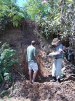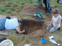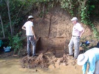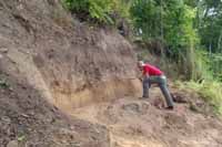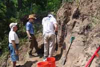 | July 11th, 2012 - Preparing the profile to remove a flotation column, and bucket auguering to determine how much of the shell midden is still intact. | |||||