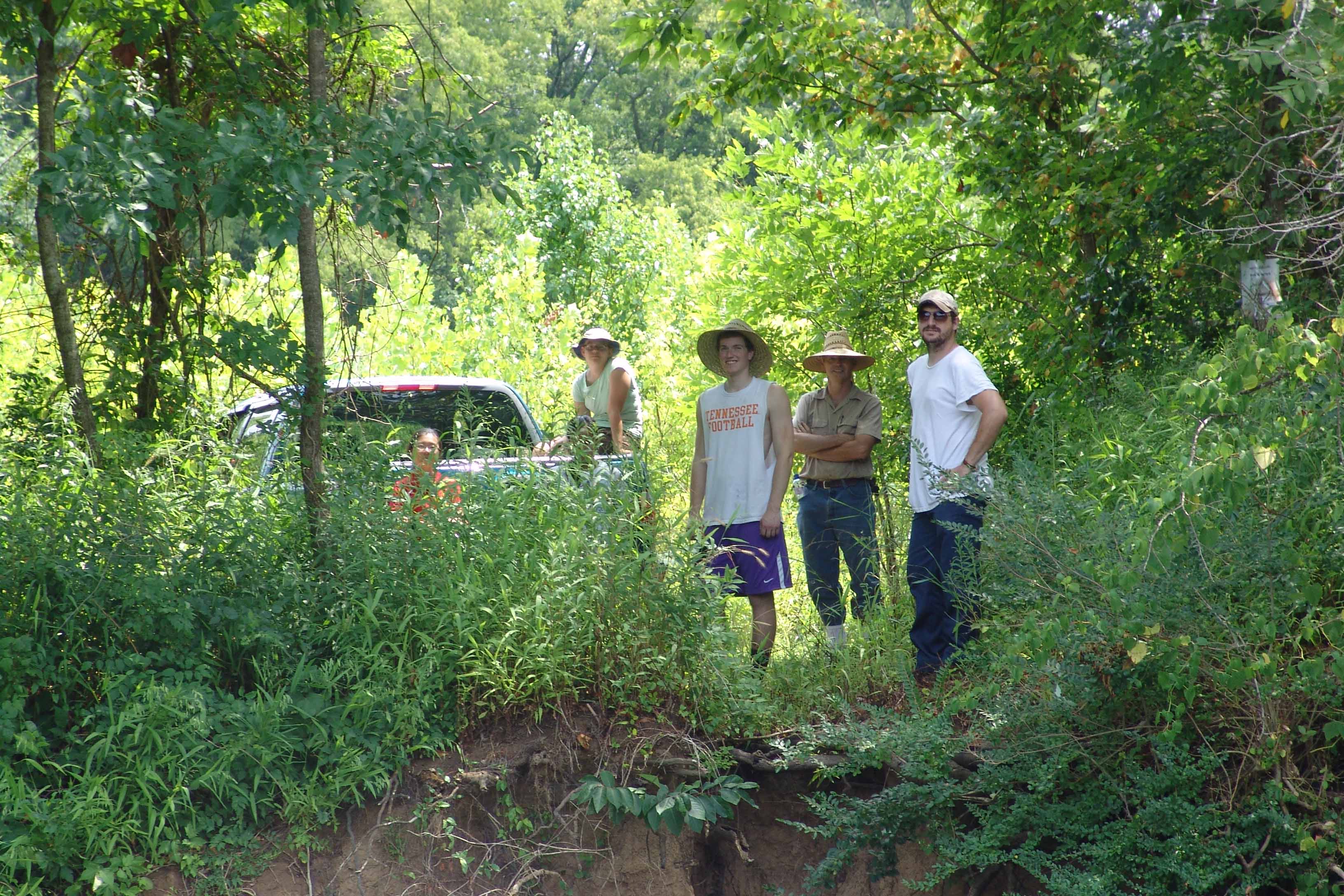 | July 18th, 2012 - Dave, Tom and Thad led Sandy Bivens, Paul Widman, and LinAnn Welch on a site tour of Bells Bend. | |||||