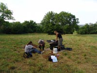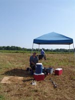 | July 22nd - Continuing to test to the west of the the Buchanan House and using the flotation machine to isolate paleobotanical material. Particle size and radiocarbon samples were taken from the second shell site we examined. | |||||