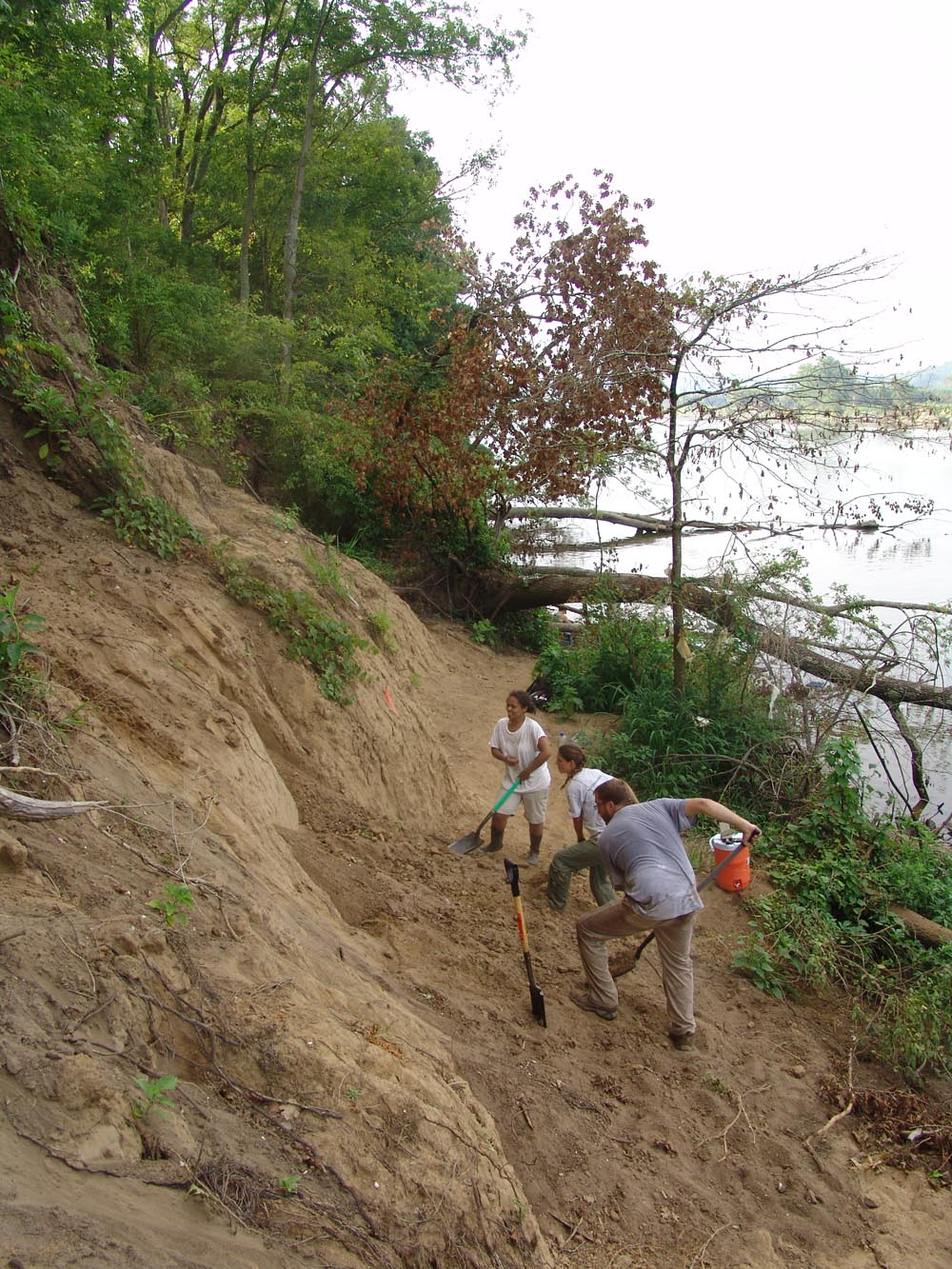 | July 28th - First day without Tom Pertierra on site, and we somehow managed to survive. Started surface collecting and profiling a new site downriver from Bells Bend. We also continued shovel testing select areas of the Bells Bend Outdoor Center. | |||||