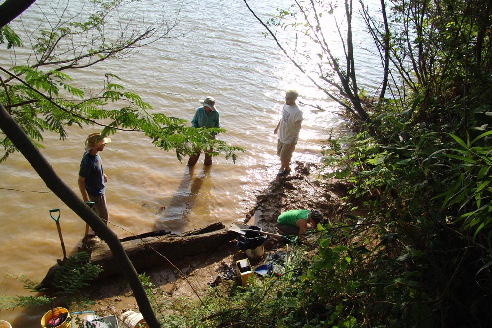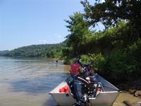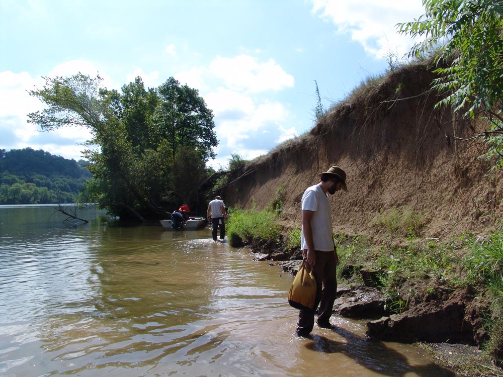| July 9th, 2012 - First day of fieldwork. After loading up the gear and the boat, we exposed a shell deposit adjacent to the Cumberland River, led by Thad Bissett, a doctoral student at UT-Knoxville. | |||||
